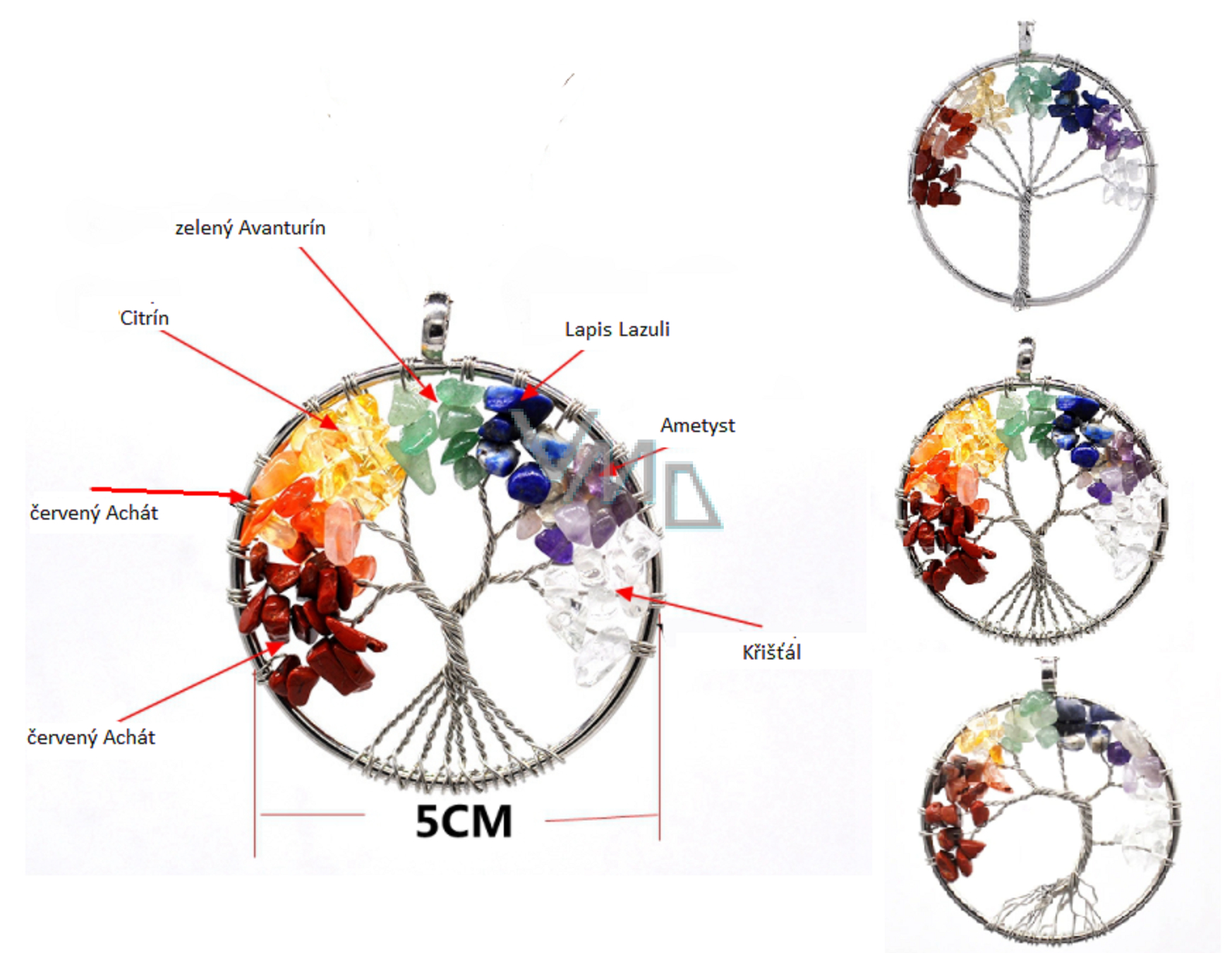 7 Chakren Baum des Lebens Anhänger Naturstein, Heilung 5 cm