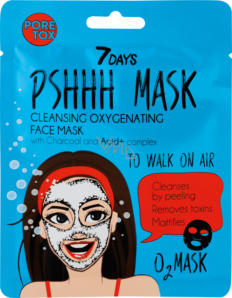 7DAYS pleťová textilní maska To Walk On Air čistí a jemně hydratuje vaši pleť. Unikátní složení ovocných kyselin jako jsou alfa hydroxykyseliny nebo AHA, včetně kyseliny glykolové, mléčné, jablečné a vinné vytváří pěnu plnou bublinek kyslíku, která proniká do nejhlubších vrstev pokožky. Navíc čistí póry a pomáhá zabraňovat vzniku černých teček. Zároveň obsažené uhlí v masce má adsorpční vlastnosti, odstraňuje toxiny, zmatňuje a sjednocuje tón pleti.
