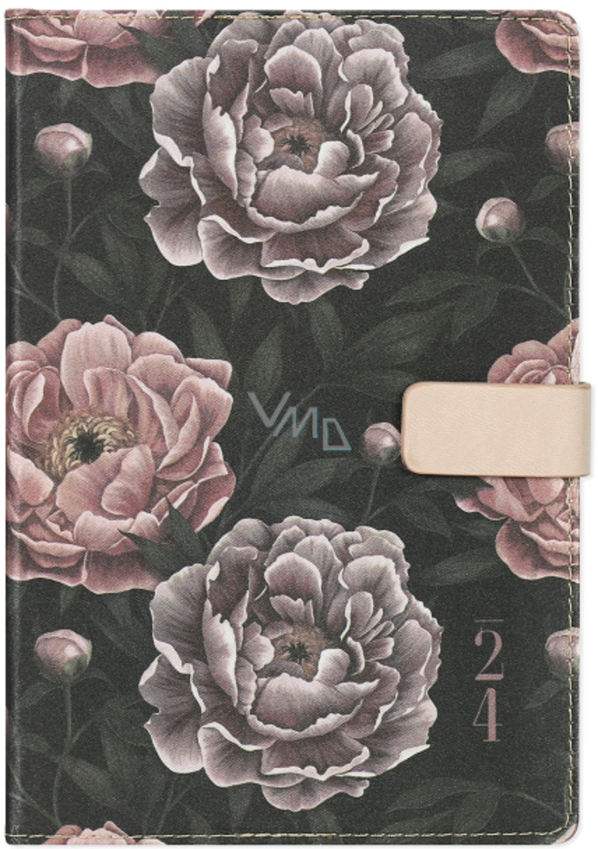 Albi Magnetisches Tagebuch 2024 Dunkle Blumen 14,5 x 21 x 2 cm