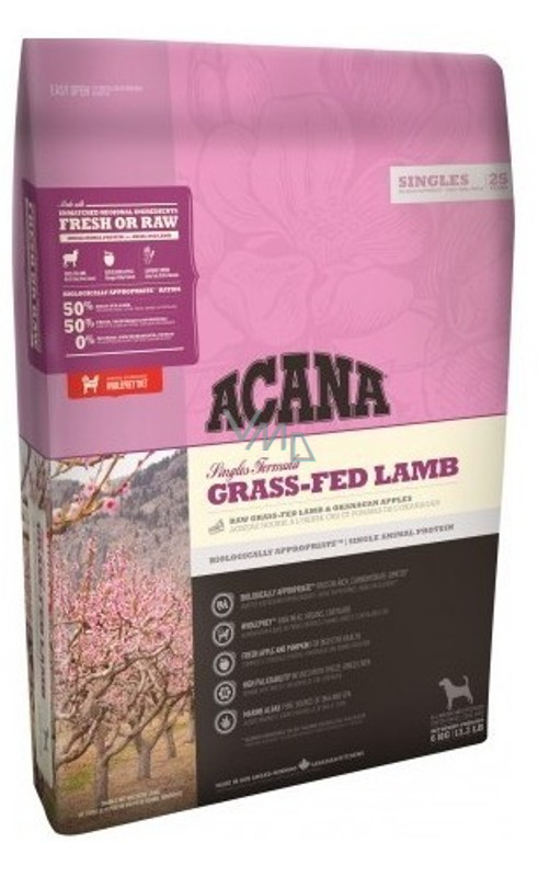 Acana Grass-Fed Lamb je jednodruhové krmivo obsahující 50 % jehněčího - lehce stravitelný protein živočišného původu - to ideální pro psy s citlivým zažíváním bez rozdílu plemen a věkových kategorií. Naše jehněčí chované na novozélandských rančích je dodávané v bohatě výživném podílu celé kořisti - včetně masa, jater a drštěk - to odráží přirozenou stravu psů. Čerstvá jablka, máslové dýně a dýně podporují zdravé trávení. Toto biologicky vhodné krmivo je připravováno z našich nejlepších a nejčerstvějších surovin a je vhodné pro vybíravé psy a psy s citlivým zažíváním. Přečtěte si naše složení a věříme, že budete souhlasit. Acana Grass-Fed Lamb nabízí bezkonkurenční obsah místních surovin, které jsou chované nebo odlovené lidmi, které známe, a kterým důvěřujeme.