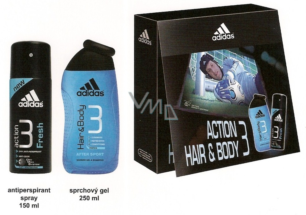 Adidas Action 3 Frisches Antitranspirant Deodorant Spray 150 ml + Duschgel 250 ml, für Männer Kosmetikset