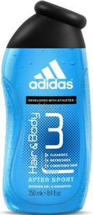 Sprchový gel Adidas After Sport na tělo a vlasy obsahuje jemné a pečující složení 3v1. Byl vyvinut ve spolupráci s vrcholovými sportovci, takže vám zajistí naprosto dokonalou ochranu před nepříjemným pocením po celý den. A po sportovním výkonu bude pro vás tím pravým osvěžením.