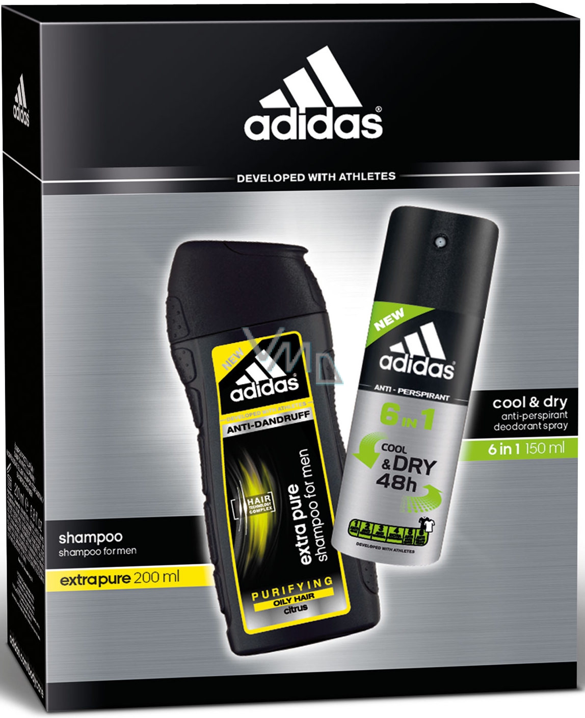 Adidas Cool & Dry 48h 6in1 Antitranspirant Deodorant Spray für Männer 150 ml + Extra reines Anti-Schuppen-Haarshampoo 200 ml, Kosmetikset