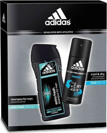Adidas Cool & Dry Fresh Antitranspirant Deodorant Spray für Männer 150 ml + Extra Fresh Haarshampoo 200 ml, Kosmetikset