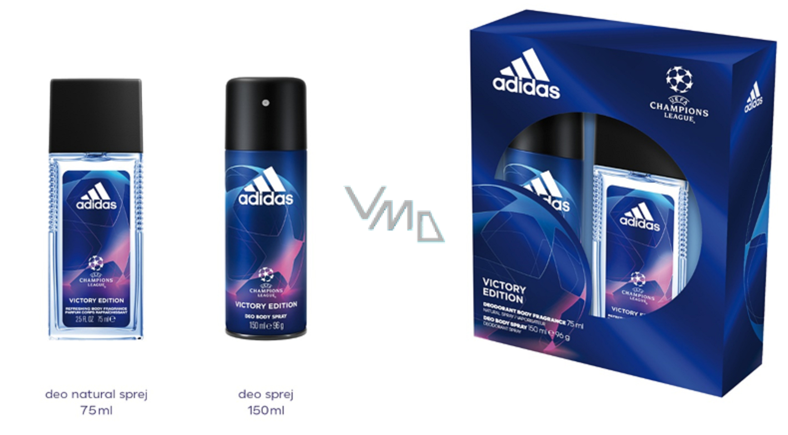 Adidas UEFA Champions League Victory Edition parfümiertes Deodorantglas für Männer 75 ml + Deodorant Spray 150, Kosmetikset