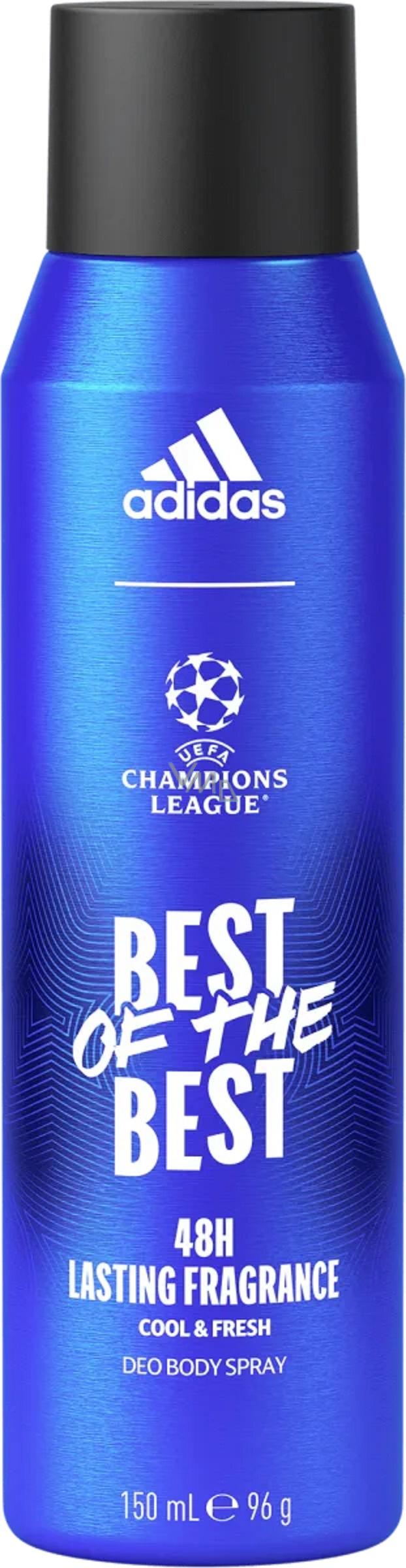 Adidas deodorant sprej Best of the Best je charakteristický svou svěží a dlouhotrvající vůní. Jedná se o řadu veganských formulí a udržitelných, recyklovaných a recyklovatelných balení. Vyzkoušejte deodorant sprej Best of the Best od značky adidas, který je vhodný pro každodenní použití.