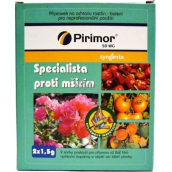 Postřikový insekticid ve formě ve vodě dispergovatelného granulátu na ochranu rostlin proti mšicím v bobulovinách, hrachu, jádrovinách, peckovinách, rajčeti, paprice, okurce, zelenině brukvovité a kořenové, salátu, špenátu setém, krmné řepě a okrasných rostlinách. Účinná látka: pirimicarb 500 g/kg tj.: 2-dimethylamino-5,6-dimethylpyrimid-4-yl-dimethylkarbamát. Další nebezpečné látky obsažené v přípravku: docusat-natrium 5-10%, talek 20-30%.