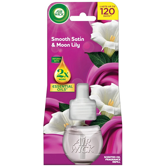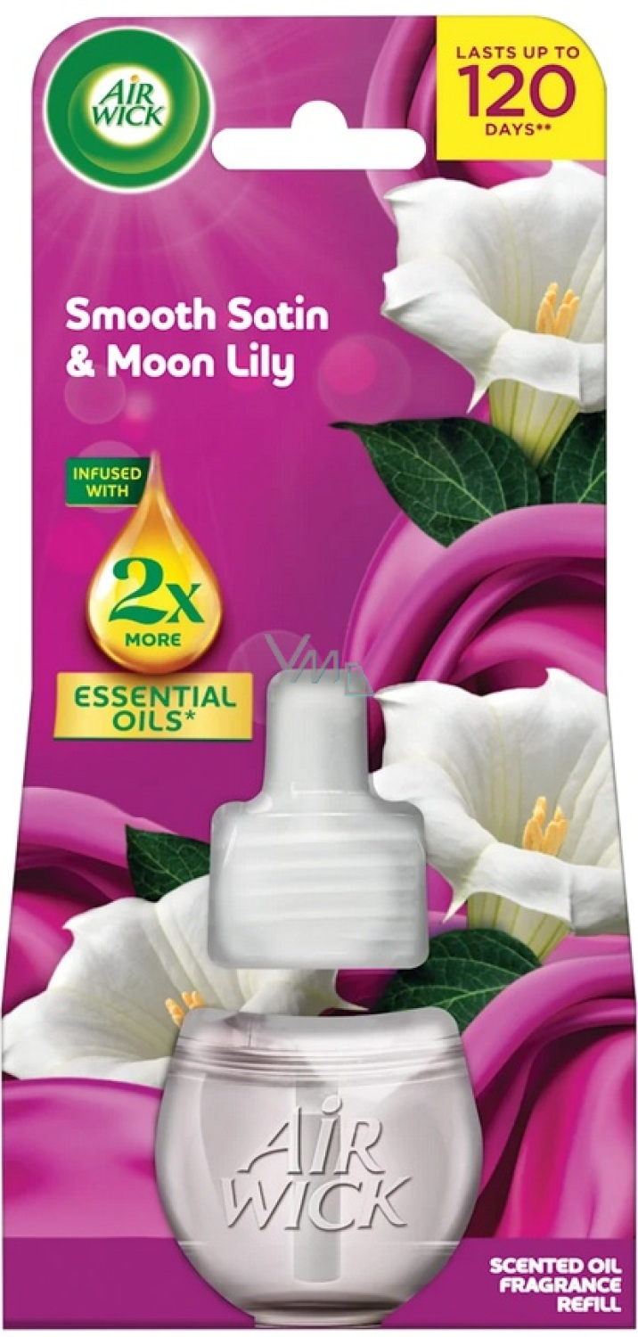 Schaffen Sie eine Atmosphäre der Ruhe und Eleganz zu Hause mit der Nachfüllung Air Wick Essential Oils Zart Satin und Mondlilie. Dieser Duft verbindet die zarten blumigen Töne der Mondlilie mit der Weichheit von Satin und vermittelt ein Gefühl von Sauberkeit, Gemütlichkeit und Wohlbefinden. Dank des Gehalts an natürlichen ätherischen Ölen bietet der Lufterfrischer einen langanhaltenden, gleichmäßig freisetzenden Duft, der Ihr Zuhause wochenlang durchdringt. Die Nachfüllung ist für alle elektrischen Lufterfrischer von Air Wick Essential Oils geeignet und der Austausch ist schnell und einfach.
