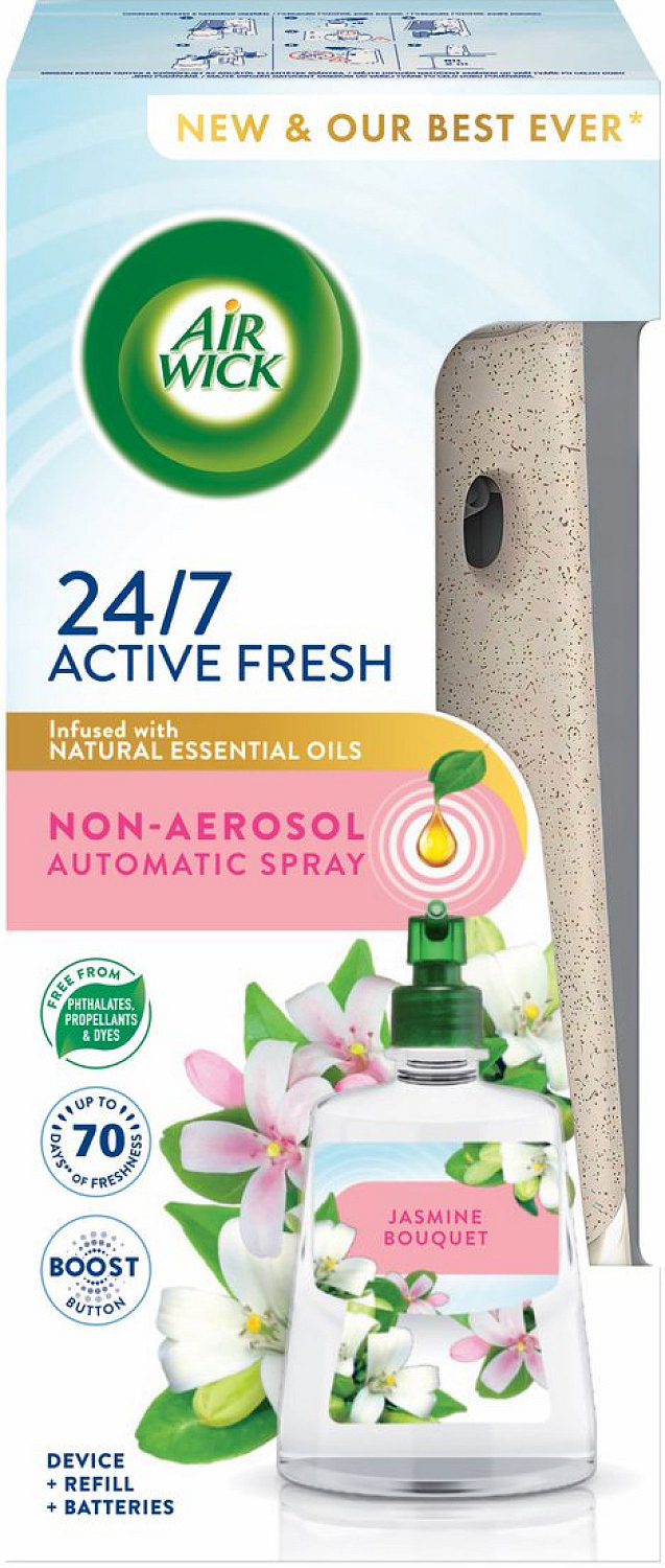 Air Wick Active Fresh gibt kontinuierliche Frische-Duftstöße frei, sodass Ihr Zuhause immer einladend duftet. Stellen Sie den Lufterfrischer einfach auf Ihre bevorzugte Duftintensität ein. Bei niedriger Einstellung duftet Ihr Zuhause bis zu 70 Tage.