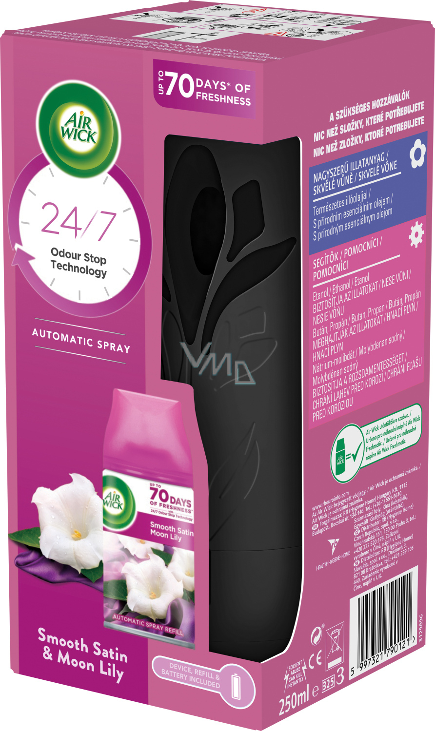 Beschreibung Air Wick FreshMatic Smooth Satin & Moon Lily - Sanftes automatisches Spray aus Satin und Mondlilie 250 ml