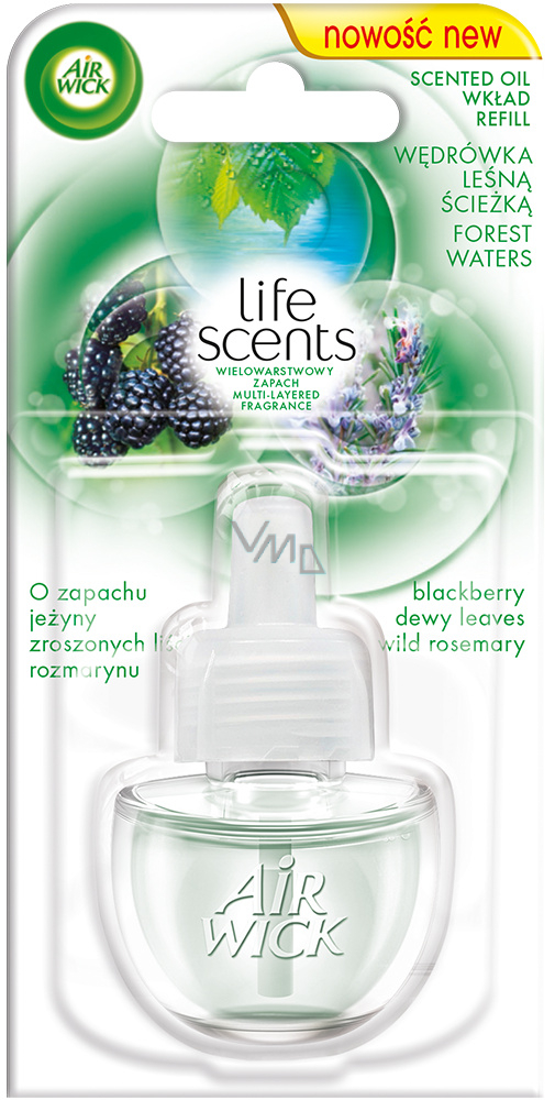 Udržovat domov plný okouzlující vůně nikdy nebylo jednodušší. Olejová tekutá náplň do osvěžovače vzduchu AIR WICK Electric z kolekce Essential Oils s relaxačním aroma Lesní potok provoní váš malý i velký pokoj, kancelář nebo jinou místnost až na 100 dní, při nastavení na nejnižší intenzitu, při používání 12 hodin. Obsažené esenciální oleje uvolňují do vzduchu decentní aroma a neutralizují nepříjemné pachy. Spolehlivě neutralizuje zápach a naplní Váš domov svěží kombinací vůní. Užijte si svůj klid a pohodu s Air Wick. Příjemná pohodová vůně ostružin, divokého rozmarýnu a orosených listů od AIR WICK přivodí dlouhotrvající pohodu v každé domácnosti či kanceláři a vytvoří příjemnou atmosféru. Užijte si svůj klid a pohodu s Air Wick.