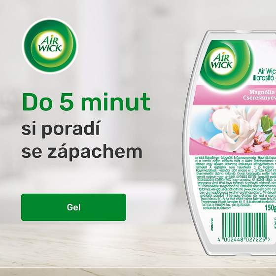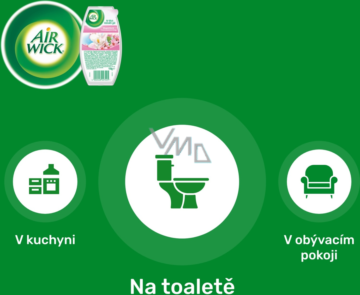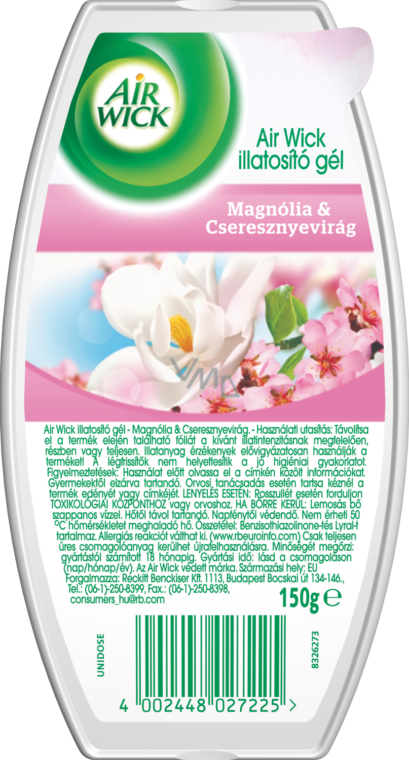 Air Wick Gel Magnolie und blühende Kirsche. Entfernen Sie die Folie von der Vorderseite des Produkts vollständig oder teilweise, um eine schrittweise Freisetzung des Duftes zu gewährleisten.
