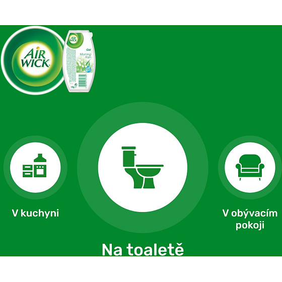 Der Air Wick Duftpaste mit dem Duft von Morgentau. Der frische Duft von Morgentau hilft, Gerüche zu beseitigen. Überdeckt Gerüche. Frischt die Luft auf.