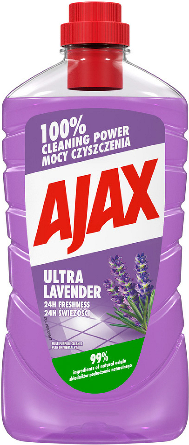 AJAX Ultra Lavender ist ein universelles Reinigungsmittel mit angenehmem Lavendelduft, das effektiv Schmutz entfernt und Oberflächen sauber und duftend hinterlässt. Dank seiner Zusammensetzung von 99 % natürlichen Ursprungs ist es nicht nur leistungsstark, sondern auch umweltfreundlich.