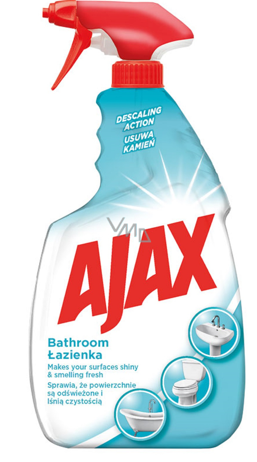 Ajax sprej do koupelny bojuje proti vodnímu kameni a zanechává povrchy zářivě čisté. Zanechává svěží vůni na čištěném povrchu.