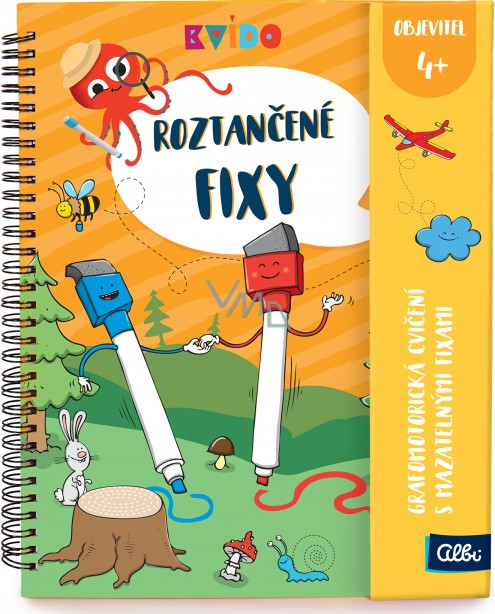Roztančené fixy jsou interaktivní grafomotorické sešity plné obrázků a aktivit s příběhy 2 barevných fixek, které učí Kvída a předškolní děti kreslit a psát a rozvíjet přitom jemnou motoriku a zrakové vnímání. Díky mazatelným fixům můžou děti sešity vyplňovat opakovaně a procvičovat si tak úkoly znovu a znovu. Každý sešit Roztančené fixy má 50 stran plných úkolů pro děti předškolního věku. Kroužková vazba a zavírání na magnet je vhodné i do batůžku na cesty.