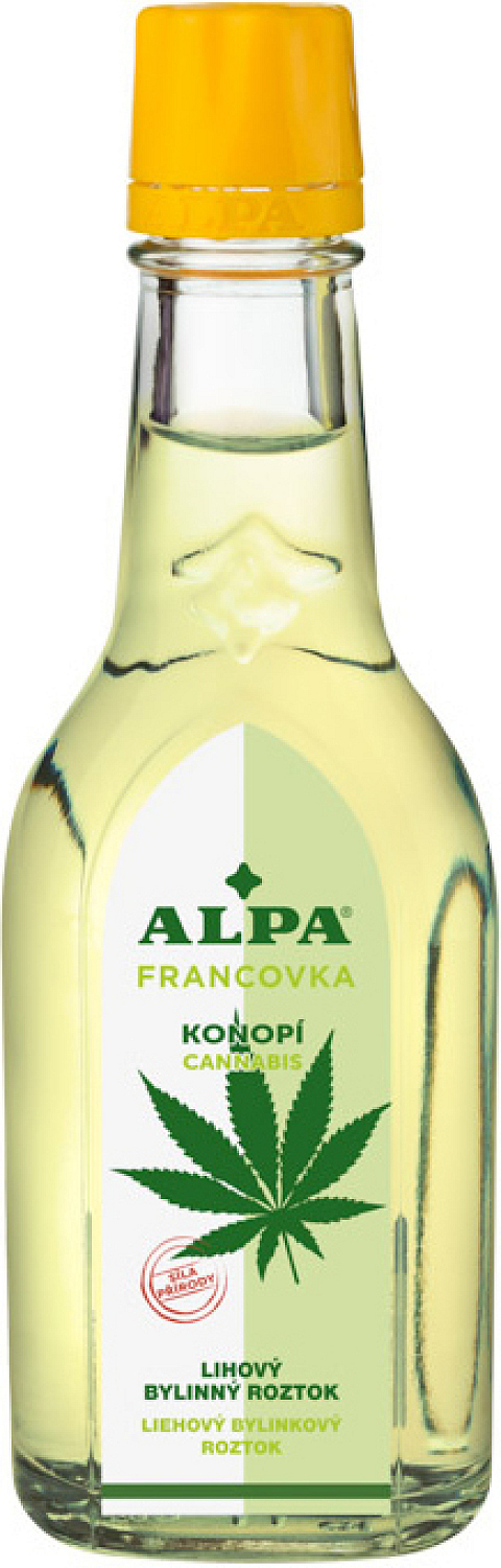 Alpa Francovka mit Hanf ist eine alkoholische Kräuterlösung. Sie eignet sich hervorragend für Bäder, Massagen und nach Verdünnung mit Wasser auch als Wickel.