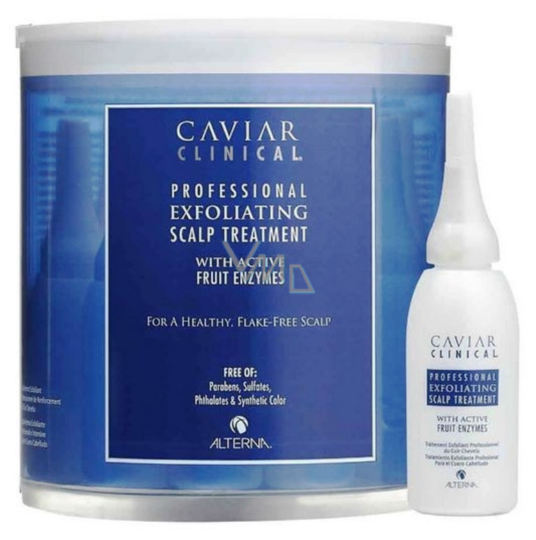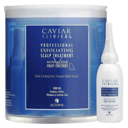 Profesionální peeling s vysoce koncentrovanými exfoliačními mikročásticemi aktivních ovocných enzymů, které pomáhají odstraňovat kožní šupinky způsobené tvorbou lupů a suchou pokožkou. Příjemně chladivé složení zklidňuje vlasovou pokožku a zmírňuje svědění a podráždění. Jeho čistící a hydratační účinky působí proti vysoušení a zlepšují celkový stav vlasové pokožky.