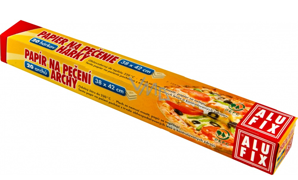 Pečící papír je vhodný pro zdravé pečení pokrmů bez použití tuků, plech s použitím pečícího papíru není třeba vymazávat. Pohodlné použití jednotlivých archů, které mají rozměr vyhovující standartnímu plechu, usnadňuje manipulaci s papírem, který se nemusí stříhat na míru. Pečící papír je oboustranně použitelný a nepřilnavý, pokrmy se na něj nelepí. Vhodný do všech typů trub i mikrovlnné. Odolný do 220 °C.