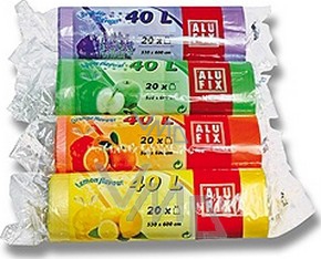 Alufix pytle na odpad. Dejte sbohem nepříjemným pachům linoucím se z vašeho odpadkového koše u vás doma, v kancelářích a dalších prostorech. Alufix přichází s revolučním řešením v podobě aromatických pytlů na odpad. Pytle jsou zcela neprodyšné a umožňují tak hygienické zachycení každého pachu. Díky stahovacím poutkům, které výrazně usnadňují manipulaci s pytlem si je jistě velice rychle oblíbíte. Nechte ve vašem domově rozvinout jen příjemnou vůni opojných citrusů, na které se můžete nechat dlouho unášet. Odpadkové pytle Alufix se vyrábí v různém barevném provedení, s různou vůní, které můžete přizpůsobit vašim interiérům.