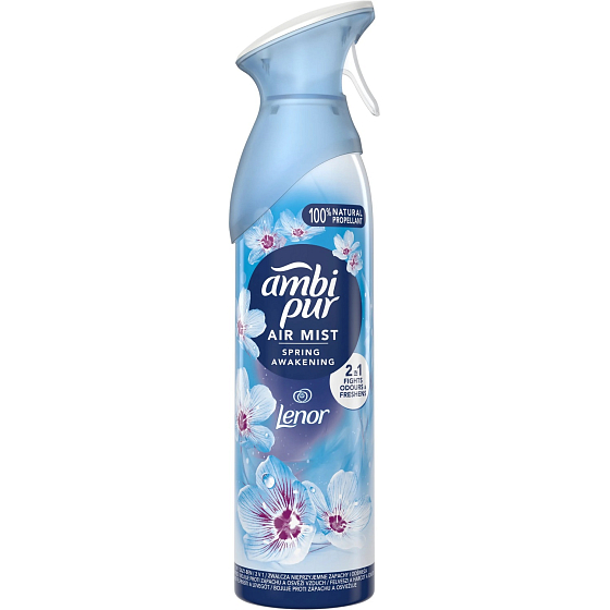 Lufterfrischer Ambi Pur mit OdourClean-Technologie entfernt unangenehme anhaltende Gerüche und hinterlässt einen leichten frischen Duft des Ozeans und des Windes. Es überdeckt nicht, sondern entfernt tatsächlich unangenehme anhaltende Gerüche und hinterlässt einen leichten frischen Duft. Unglaublich leichte frische Düfte. Nicht entzündlich, 100% natürliche Treibgase. Der Duft Spring Awakening ist inspiriert von dem leichten Duft des Weichspülers Lenor, der Ihnen das Gefühl von frisch gewaschener Wäsche verleiht.
