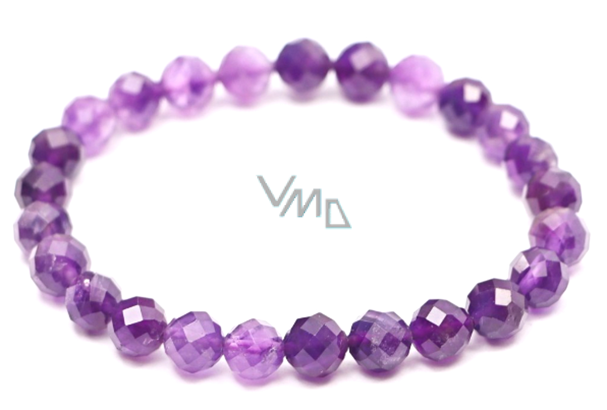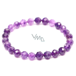 Amethyst-Facettenarmband elastischer Naturstein, Kugel 6 mm / 16 cm, für Kinder, Stein der Könige und Bischöfe