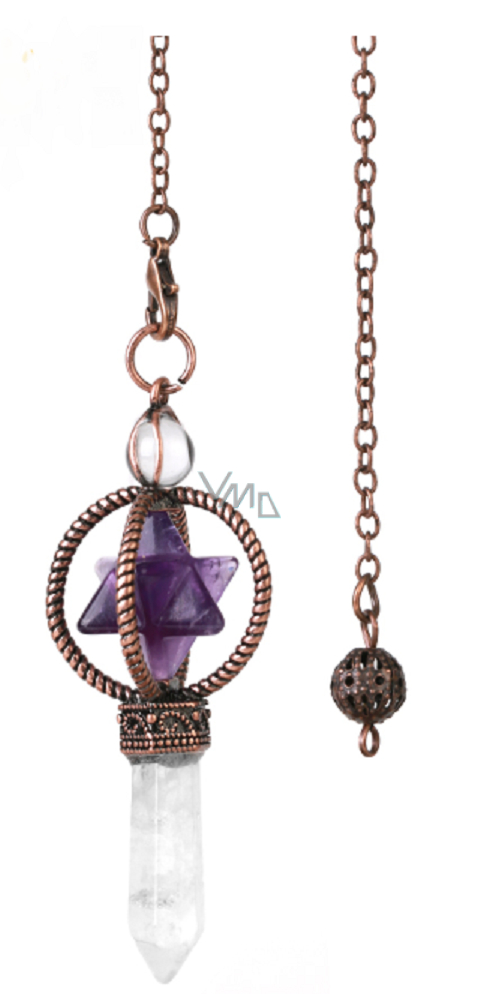 Amethyst Merkaba Pendel + Klarquarz + Bronze, Natursteinanhänger 7,7 cm, Kette ca. 26,5 cm