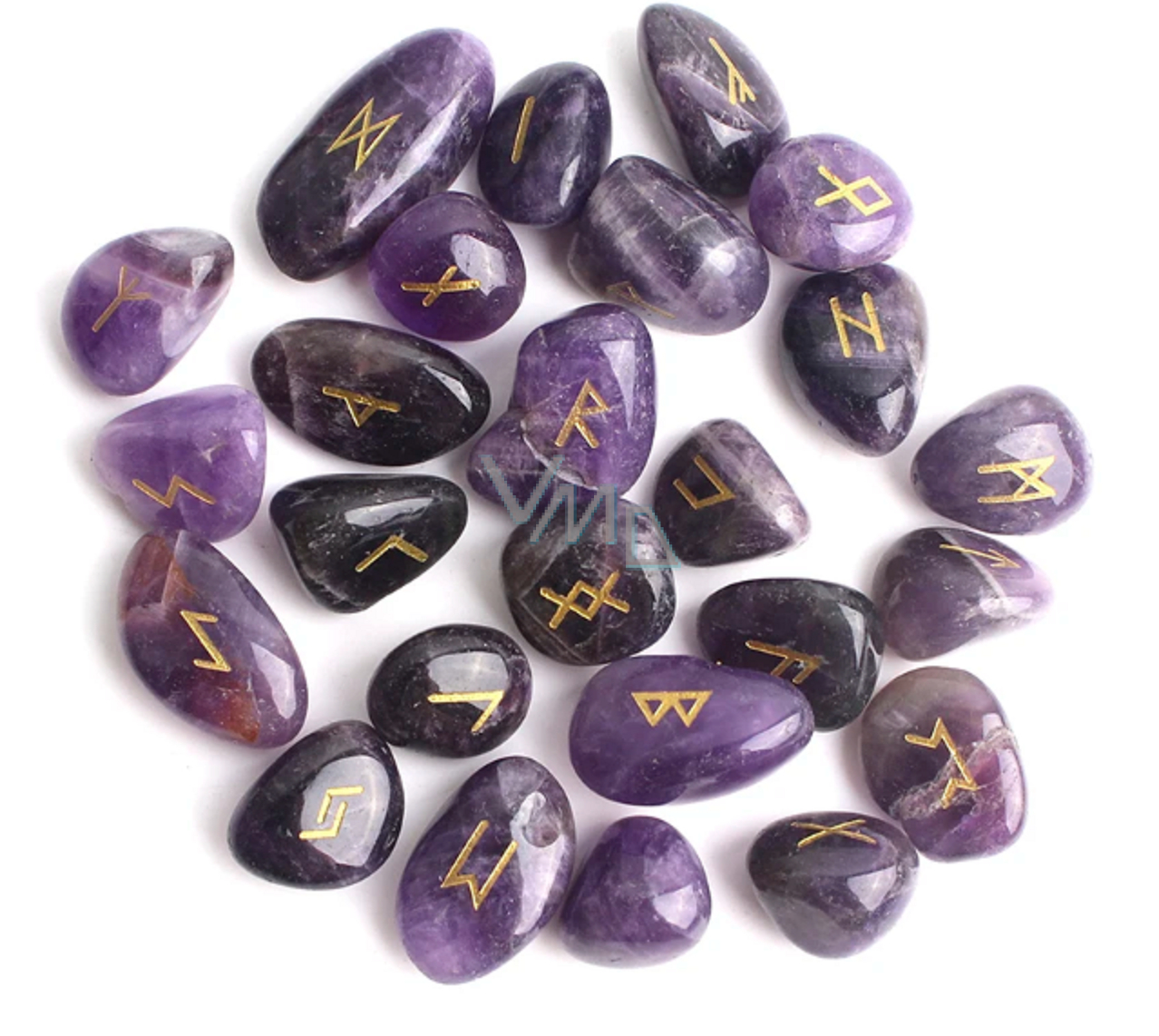 Ametyst Runen-Alphabet Naturstein, 10 - 30 mm 25 Stück