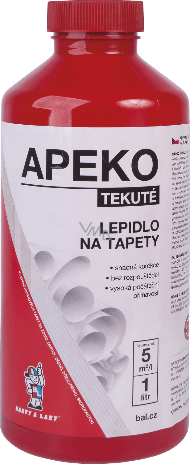 Apeko V1306 ist ein flüssiger Tapetenkleber zum Kleben von reflexiven, papiernen und PVC-Tapeten mit papierener Rückseite in Innenräumen auf Holz, Metall, Beton, Putz, agglomerierten Holzmaterialien und ähnlichen Untergründen. Der Kleber kann auch als flüssiger Haftvermittler für Malerprodukte verwendet werden.