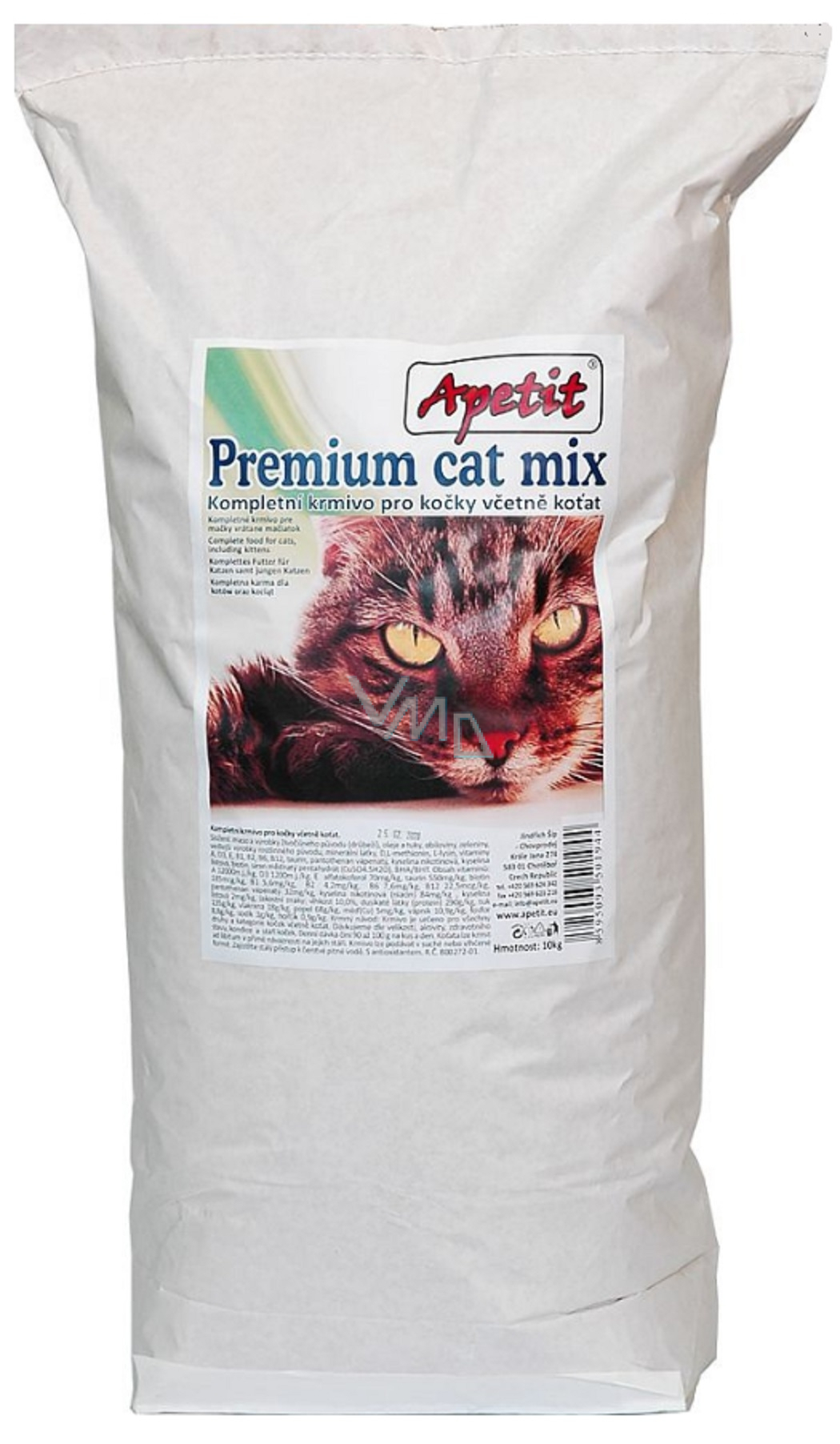 Velmi chutné extrudované krmivo Apetit Premium pro všechny kočky, včetně koťat je vyrobeno z kvalitních, kontrolovaných surovin. Plnohodnotná strava obohacena o taurin - důležitou aminokyselinu při jejímž nedostatku může dojít u kočky k poruchám zraku a sluchu. Energeticky hodnotné krmivo s vysokou stravitelností zajištěnou obsahem kuřat, řepné dužiny a čistých aminokyselin. Po delším podávání krmiva zjistíte, že Vaše kočka má skvělou kondici, potřebnou energii, dobré zažívání a krásnou pružnou srst. Vysoký a vyvážený poměr vitamínů spolu s odpovídajícím množstvím minerálních látek a stopových prvků je samozřejmostí krmiva Apetit a přispívá k celkovému dobrému zdraví Vaší kočky.