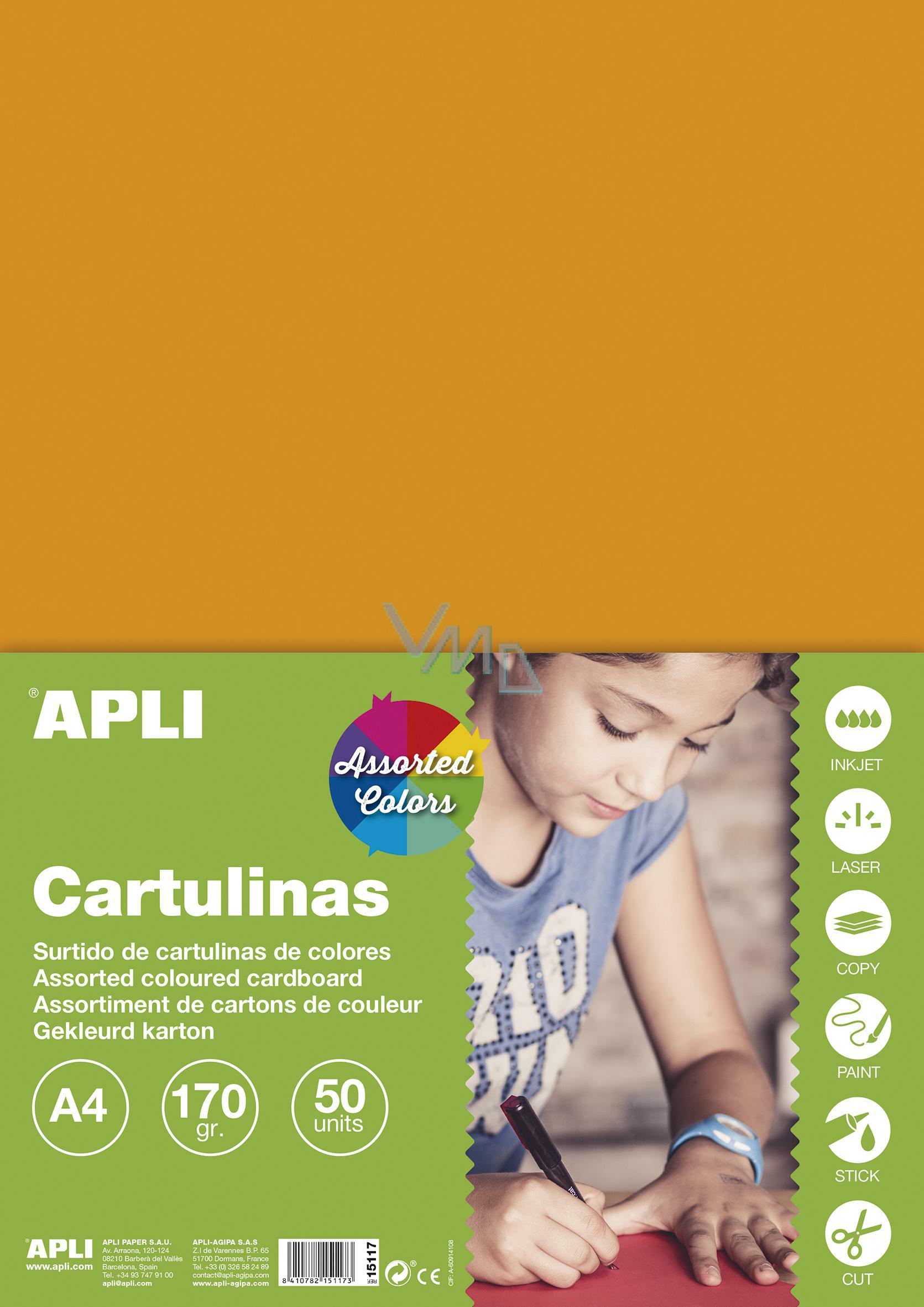 Apli Bunte Papiere A4 Mix leuchtender Farben 170 g 50 Blatt