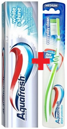 Aquafresh Whitening White & Shine Zahnpasta mit Bleaching-Effekt 100 ml + Aquafresh Everyday Clean mittlere Zahnbürste 1 Stück