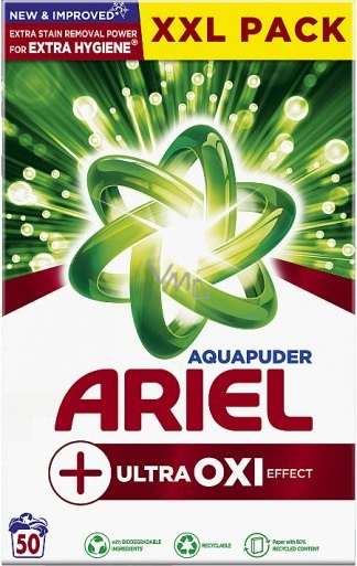 Ariel Aquapuder Ultra Oxi Effect Waschpulver für weiße, bunte und schwarze Wäsche 50 Dosen 3,25 kg