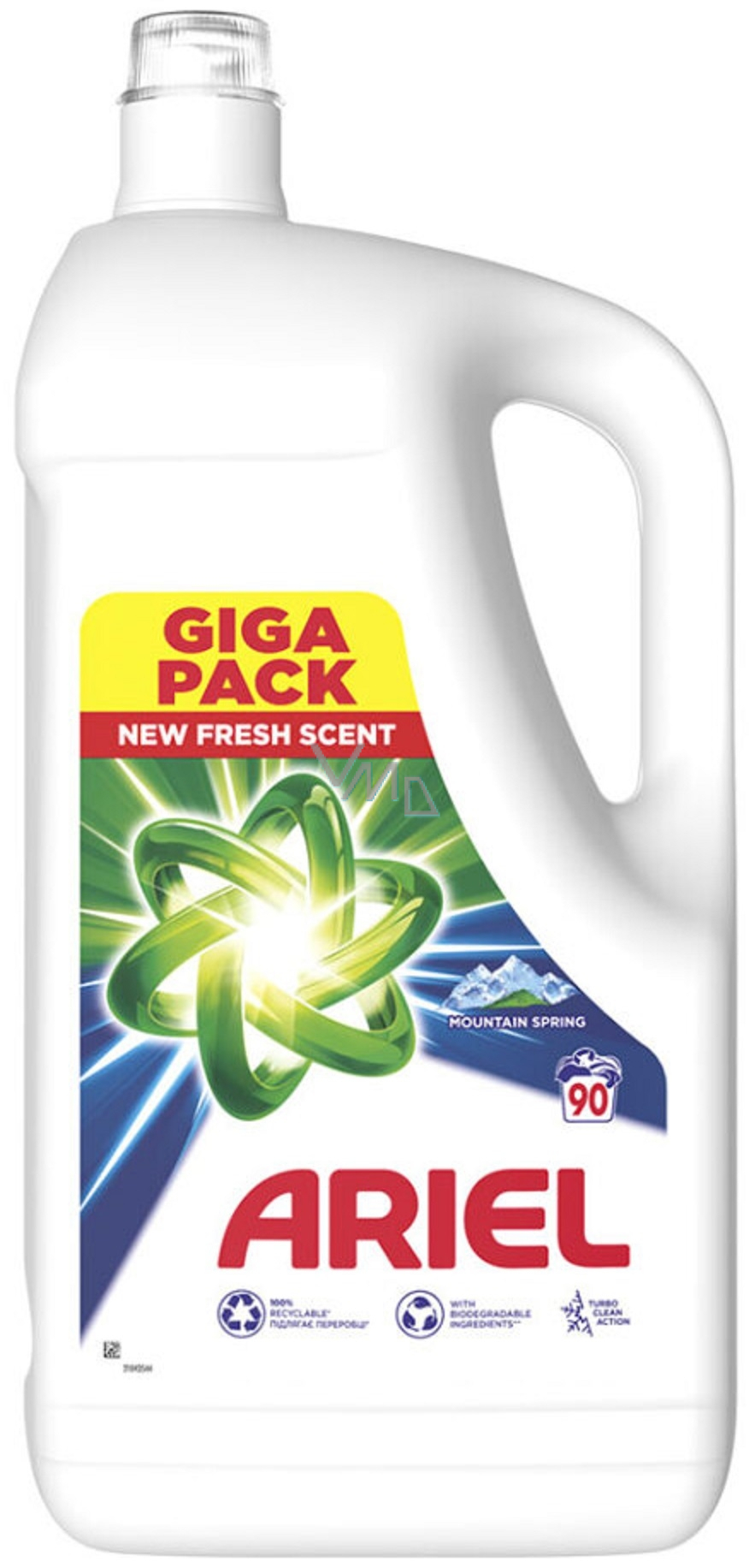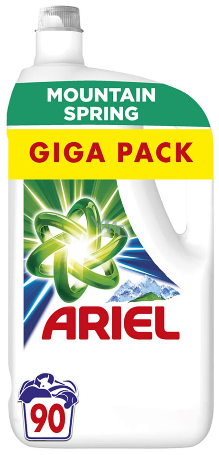 Ariel Mountain Spring Flüssigwaschgel für saubere und duftende, fleckenfreie Wäsche 90 Dosen 4,5 l