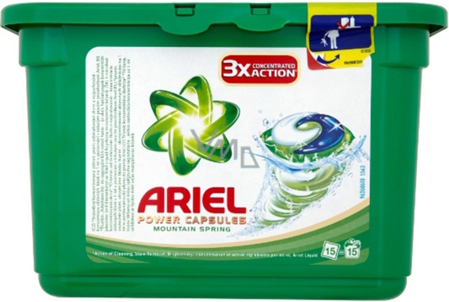 Die konzentrierten Ariel All in 1 Waschmittelkapseln haben ein mehrkammeriges Design, das die Inhaltsstoffe stabil getrennt hält, bis sie nass werden. Die Kapselverpackung löst sich beim Kontakt mit Wasser vollständig auf und setzt die Wirkstoffe frei.