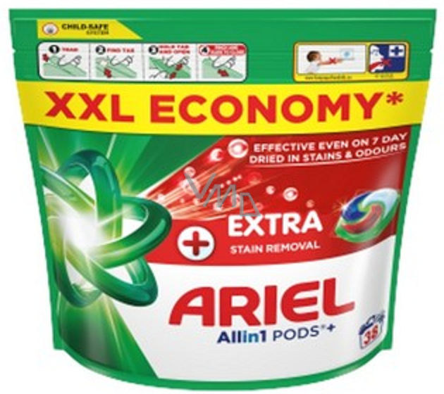 Vyzkoušejte Ariel All-in-1 Pods+ Extra Clean Stean Removal prací kapsle s červenou komůrkou navíc, která si poradí i se 7 dní starými zaschlými skvrnami a zápachem. Tyto univerzální kapsle poskytují dokonalou čistotu a dlouhotrvající svěžest vašeho prádla – a to i při praní na nízké teploty.