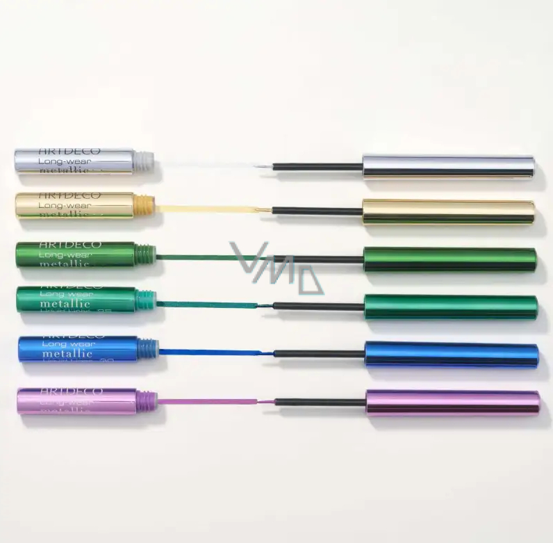 Betonen Sie Ihren einzigartigen Look und lassen Sie Ihre Persönlichkeit mit diesem langanhaltenden metallic flüssigen Eyeliner Artdeco Long-Wear Metallic in der Farbe 20 Metallic Green strahlen, der Ihren Blick schon mit einem Strich zum Leuchten bringt! Mit dem feinen und präzisen Pinsel können Sie sowohl eine dünne, elegante Linie als auch einen auffälligen dramatischen Effekt entlang der Wimpernlinie leicht zeichnen. Die hochwertige Formulierung mit ultra-feinen Perlen sorgt für einen intensiven metallischen Glanz, während spezielle filmformende Substanzen Wasserdichtigkeit, Nichtklebrigkeit und Beständigkeit gegen Verwischungen von bis zu 24 Stunden garantieren. Glycerin sorgt für eine angenehme, glatte Textur, die die Augenlider nicht austrocknet, und die elegante Verpackung mit metallic Effekt unterstreicht den insgesamt luxuriösen Eindruck.