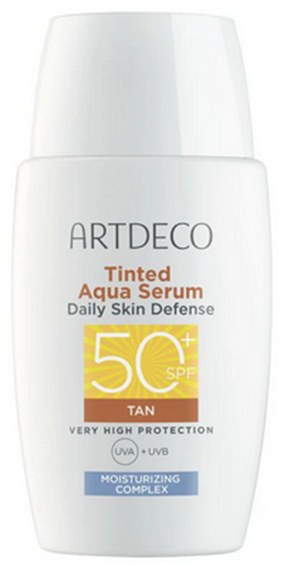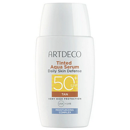 ARTDECO Tinted Aqua Serum Daily Skin Defense SPF 50+ ist eine sanft getönte Feuchtigkeitscreme, die hohen Schutz, Hautpflege und ein natürliches Hautbild in einem Schritt vereint. Es ist ideal für die tägliche Anwendung, wenn die Haut Leichtigkeit, Feuchtigkeit und zuverlässigen Schutz benötigt. Die leichte Textur zieht schnell ein und hinterlässt ein natürliches, strahlendes Finish ohne beschwerendes Gefühl. Die sanfte Tönung passt sich leicht an die Haut an und hilft, ein einheitliches, frisches Aussehen zu erzielen.