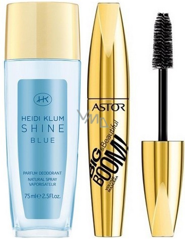 Astor Big & Beautiful Boom! Mascara schwarz 12 ml + Heidi Klum Shine Blue parfümiertes Deodorantglas für Frauen 75 ml, Kosmetikset