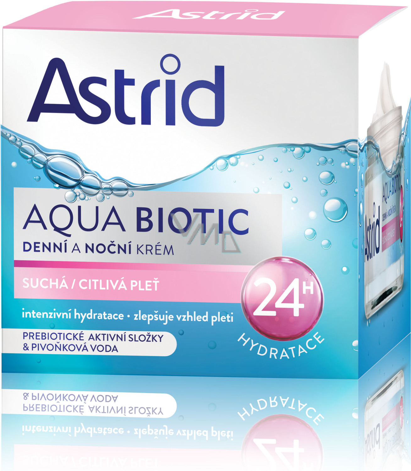 Astrid Aqua Biotic ist eine Tages- und Nachtfeuchtigkeitspflege, die der Haut bis zu 24 Stunden intensive Feuchtigkeit bietet und sie gleichzeitig mattiert. Die leichte, frische Formel, bereichert mit einem Vitamin-Komplex, schützt die Haut vor schädlichen äußeren Einflüssen und hilft, ihre Elastizität zu verbessern. Der hochwirksame Feuchtigkeitskomplex HYDROVITON Plus trägt dazu bei, das optimale Feuchtigkeitsniveau in der Haut aufrechtzuerhalten und hinterlässt sie samtig weich und elastisch. Ihre Haut wird wunderbar glatt, gesünder und natürlich frisch sein! Dermatologisch getestet.