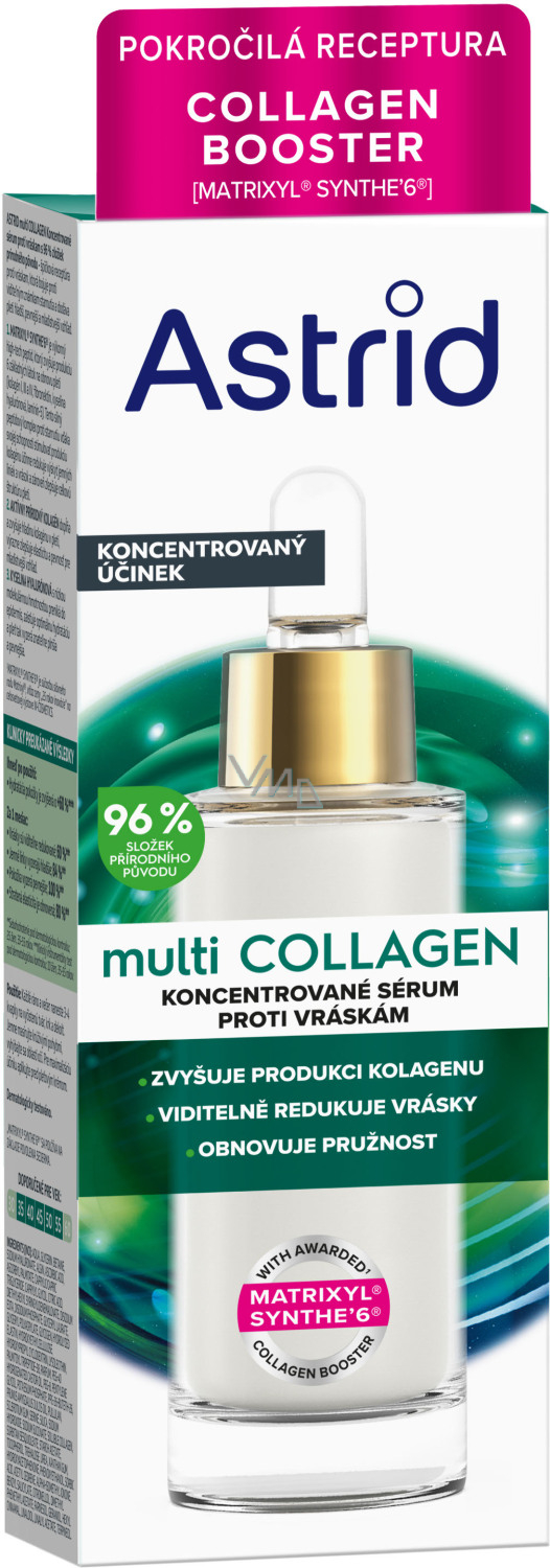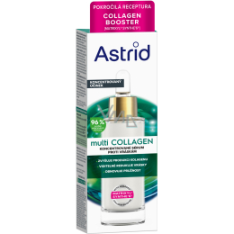 Das Astrid Multicollagen Gesichtss serum ist ein konzentriertes Präparat in einer 30 ml Flasche, das für den Kampf gegen die ersten Anzeichen der Hautalterung – feine Linien, Falten und Verlust von Elastizität – entwickelt wurde.