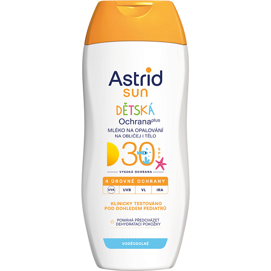 Dětské mléko na opalování OF 30 Sun nabízí vašim dětem vysokou ochranu před škodlivými slunečními paprsky. Mléko je určeno na tělo i obličej, je vysoce voděodolné a má vyvážený poměr ochranných filtrů. Obsahuje D-panthenol a multivitaminový komplex (beta-karoten a vitaminy A, E, F).