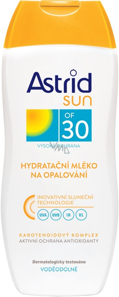 ASTRID SUN Hydratační mléko na opalování OF 30 s inovativní sluneční technologií (UVA/UVB/IR*/VL*) poskytuje pokožce širokospektrální fotostabilní ochranu před škodlivými vlivy UV a infračerveného záření a viditelného světla.