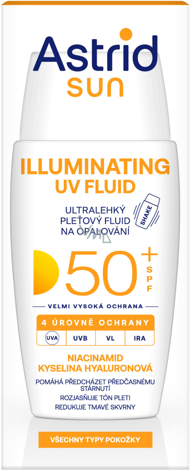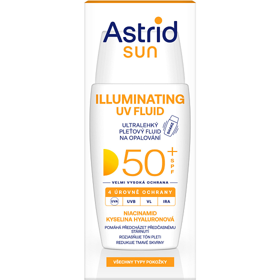 Das ultraleichte Pflege-Fluid Astrid Sun OF50+ bietet hohen Schutz vor Sonnenstrahlung mit einem Faktor SPF 50+. Es ist hauptsächlich für das Gesicht und empfindliche Hautpartien gedacht, wo effektiver, aber leichter Schutz erforderlich ist. Das Fluid zieht schnell ein, hinterlässt keinen fettigen Film oder weißen Belag und ist auch für empfindliche Haut geeignet. Dank seiner leichten Textur sorgt es für ein angenehmes Gefühl nach der Anwendung und unterstützt die langanhaltende Hydratation der Haut während des Sonnenbades.