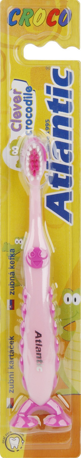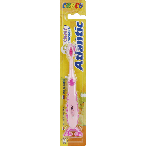 Zahnbürste Atlantic Croco, dank der speziellen Kopfform ermöglicht eine perfekte und einfache Reinigung auch an schwer zugänglichen Stellen. Geeignet für das Halten durch kleine Kinderhände.