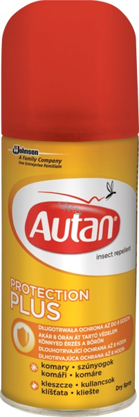 Autan Protection Plus rychleschnoucí sprej - rychle zasychající repelent ve spreji se nanáší jemným nástřikem na kůži a okamžitě chrání před komáry, včetně tropických a tygřích až po dobu 8 hodin, bodavým mouchám (ovádům) až 7 hodin a klíšťatům až 8 hodin.