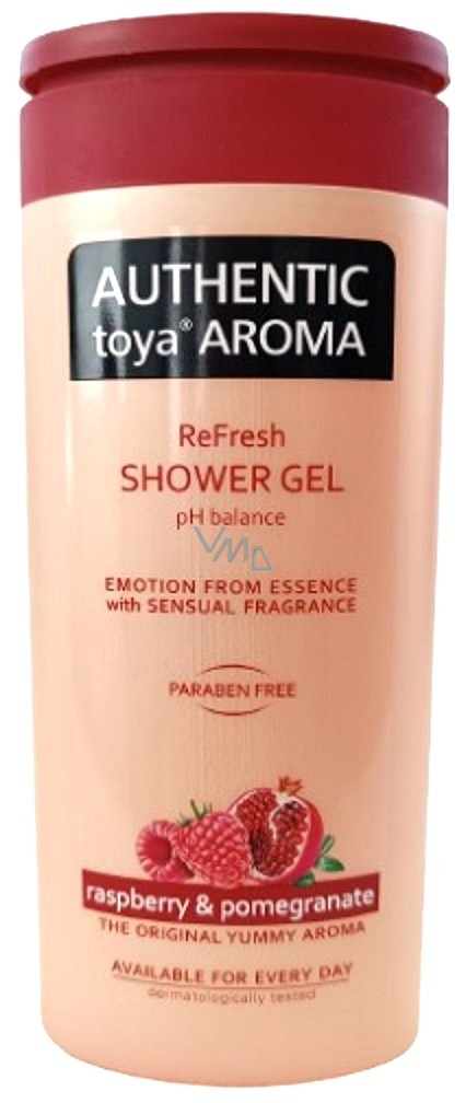 Osvěžující sprchový gel Authentic Toya Aroma s originální autentickou vůní maliny a granátového jablka. Jemné složení bez parabenů je vhodné pro každodenní použití a díky bohaté pěně a svěží vůni se sprchování stává opravdovým zážitkem.
