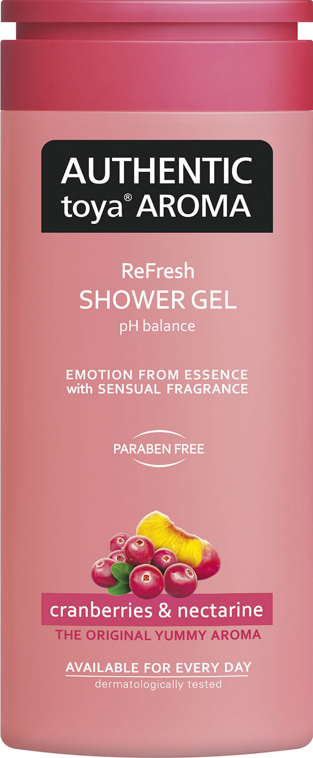 Erfrischendes Duschgel Authentic Toya Aroma mit originellem authentischem Duft Cranberries und Nektarine.