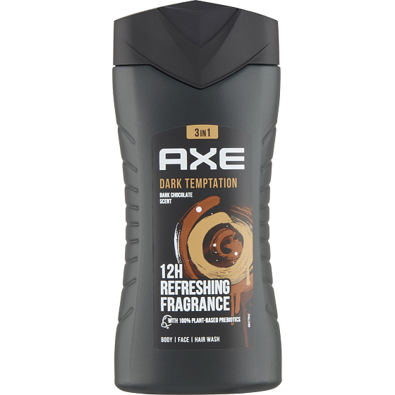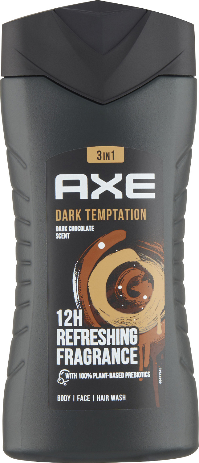 Duschgel Axe Dark Temptation - verführerischer und attraktiver Duft. Wecke unwiderstehliche Anziehung! Lass deiner Fantasie freien Lauf! Genieße eine angenehme entspannende Dusche mit diesem Duschgel mit verführerischem und einzigartigem Duft von dunkler Schokolade. Süß und würzig.