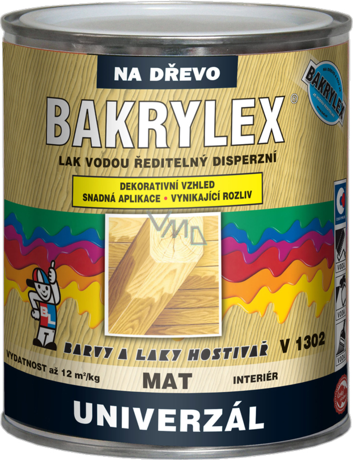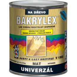 BAKRYLEX LAK UNIVERSAL ist ein wasserverdünnbarer acrylfarbloser Lack, der für die Innenanwendung auf Hartholz und Weichholz, Möbelteilen, Holz- und Korkverkleidungen, Sperrholz usw. gedacht ist. Der Lack kann auch für den Deckanstrich auf Dispersionsfarben verwendet werden. Er erfüllt die Anforderungen von ČSN EN 71-3, Teil 3: Sicherheit von Spielzeug. Migration bestimmter Elemente.